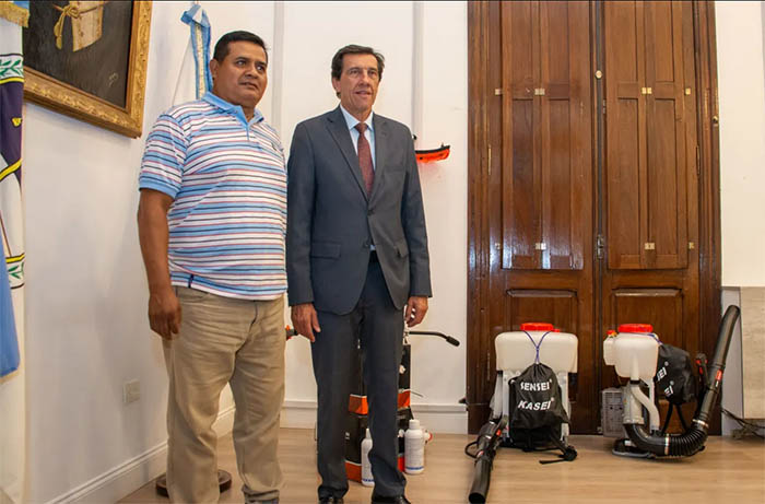 La entrega, de mochilas fumigadoras y desmalezadoras, se hizo en el marco del programa de reforzamiento de equipamiento para fortalecer los operativos de lucha contra la proliferación del mosquito del dengue, teniendo en cuenta la temporada de calor y lluvia que hay en esta temporada.