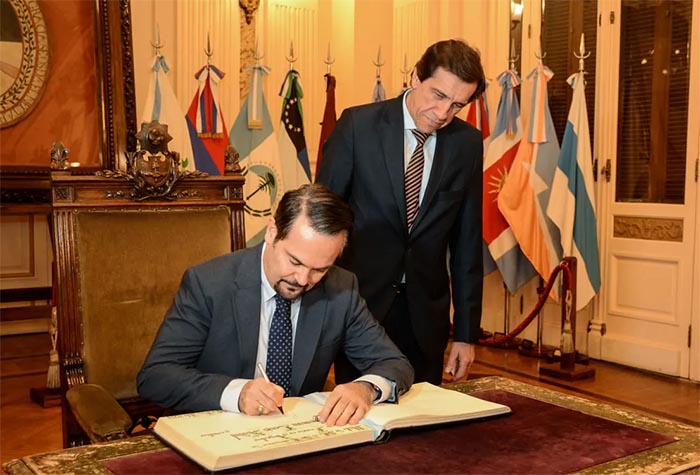 En el marco del Seminario Internacional sobre Ambiente, Desarrollo Sostenible, Gobernanza y Producción de Litio que se realiza en Jujuy, el gobernador Carlos Sadir recibió al embajador de Francia en Argentina, Romain Louis Nadal, oportunidad en la que destacó el interés de distintas empresas que consideran a nuestra provincia como destino para inversiones. Ademas, el embajador, fue declarado Huésped de Honor y plasmó su firma en el libro de oro del Salón de la Bandera.